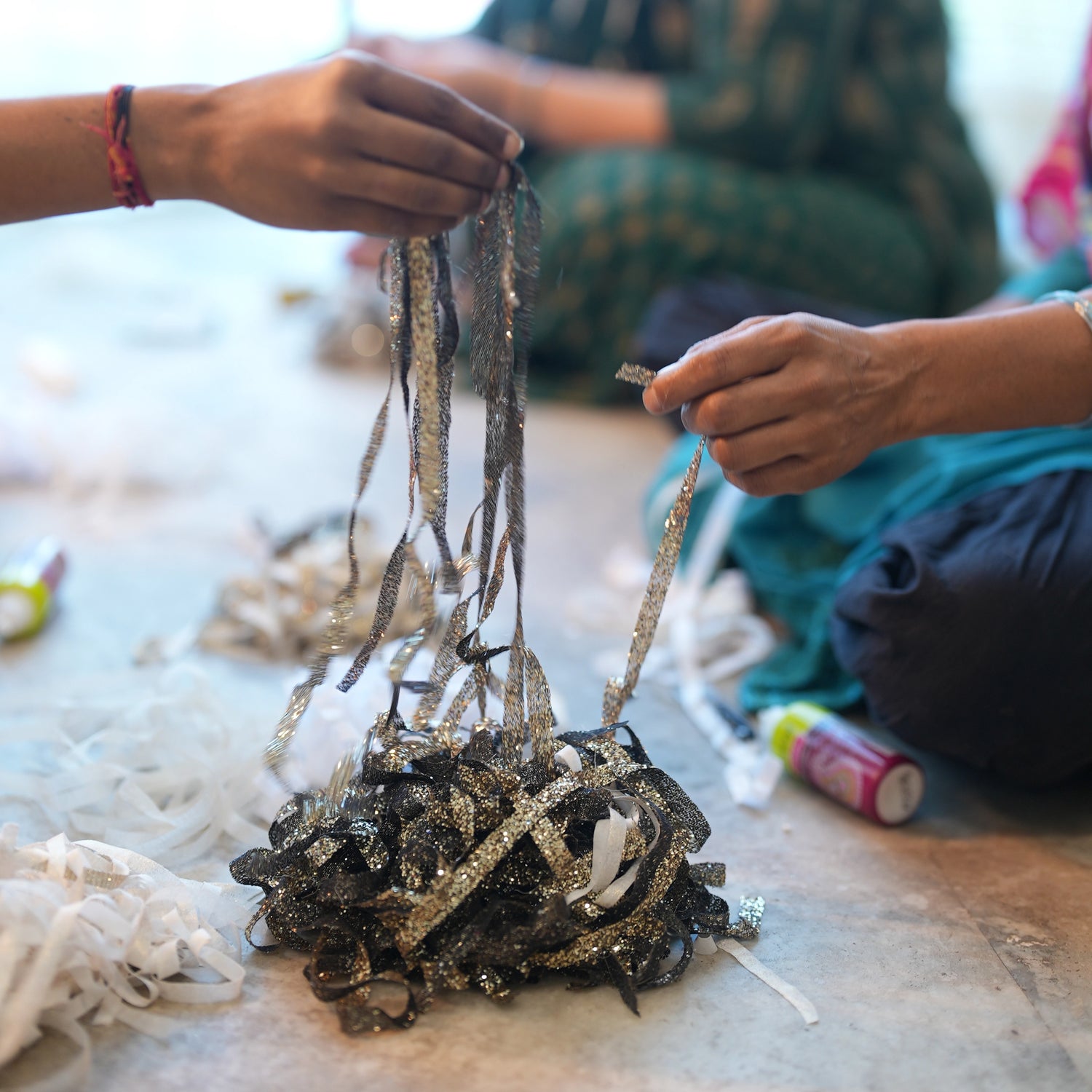 We’re committed to the use of recycled fabrics and go steps beyond...our garments are produced on a handloom, where we lovingly revive and repurpose materials.