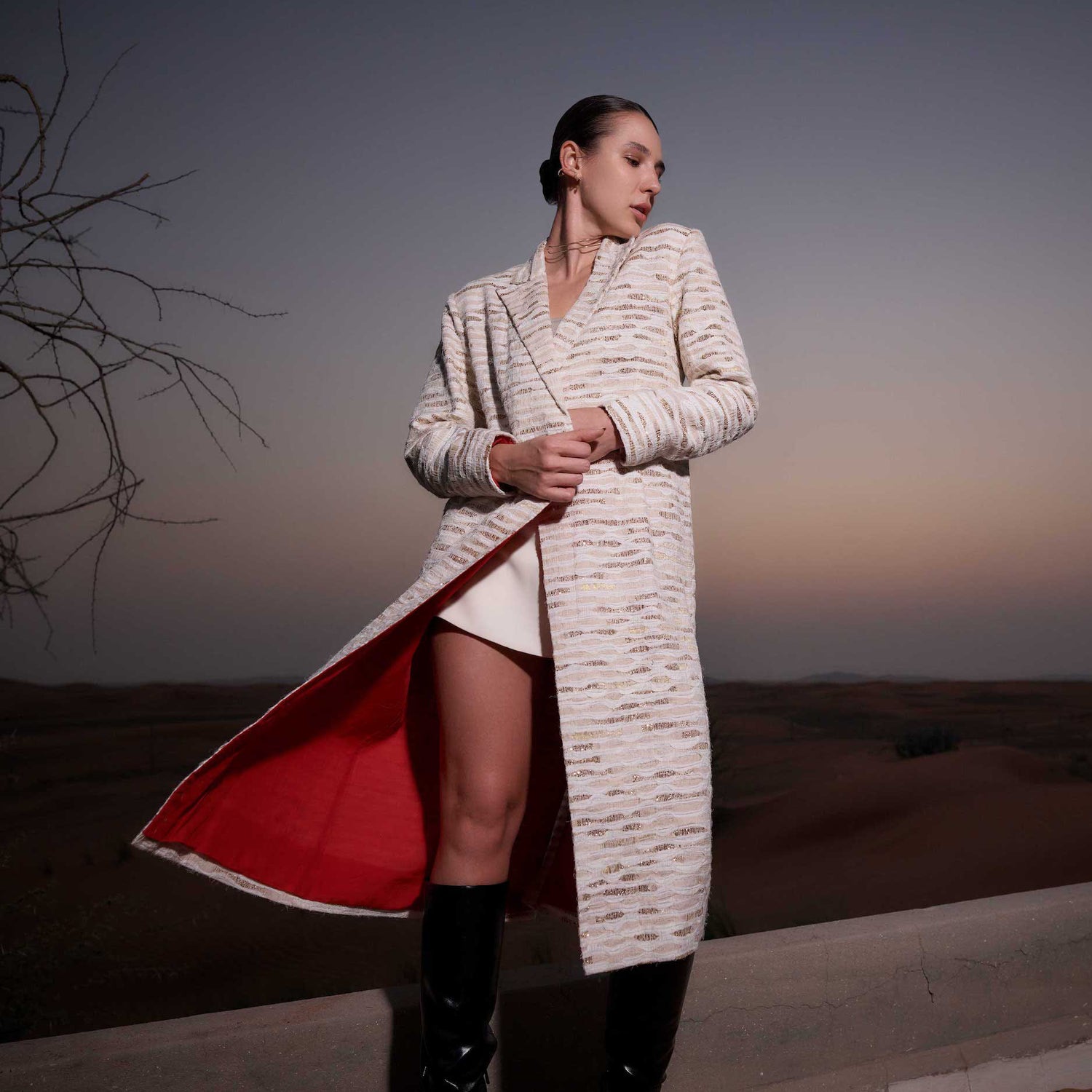 This inspired Kashesh enormously, so much so that she decided to name her first capsule collection after the beautiful arabic word ABR, which translates to ‘cloud’, and 'weaving one sky' for kashesh as a beautiful homage to His Highness Sheikh Mohammed bin Rashid Al Maktoum's vision. The capsule collection ABR by KASHESH is about citizens of the world, those who love stories from far away lands, stories of bringing people and all cultures under one sky.